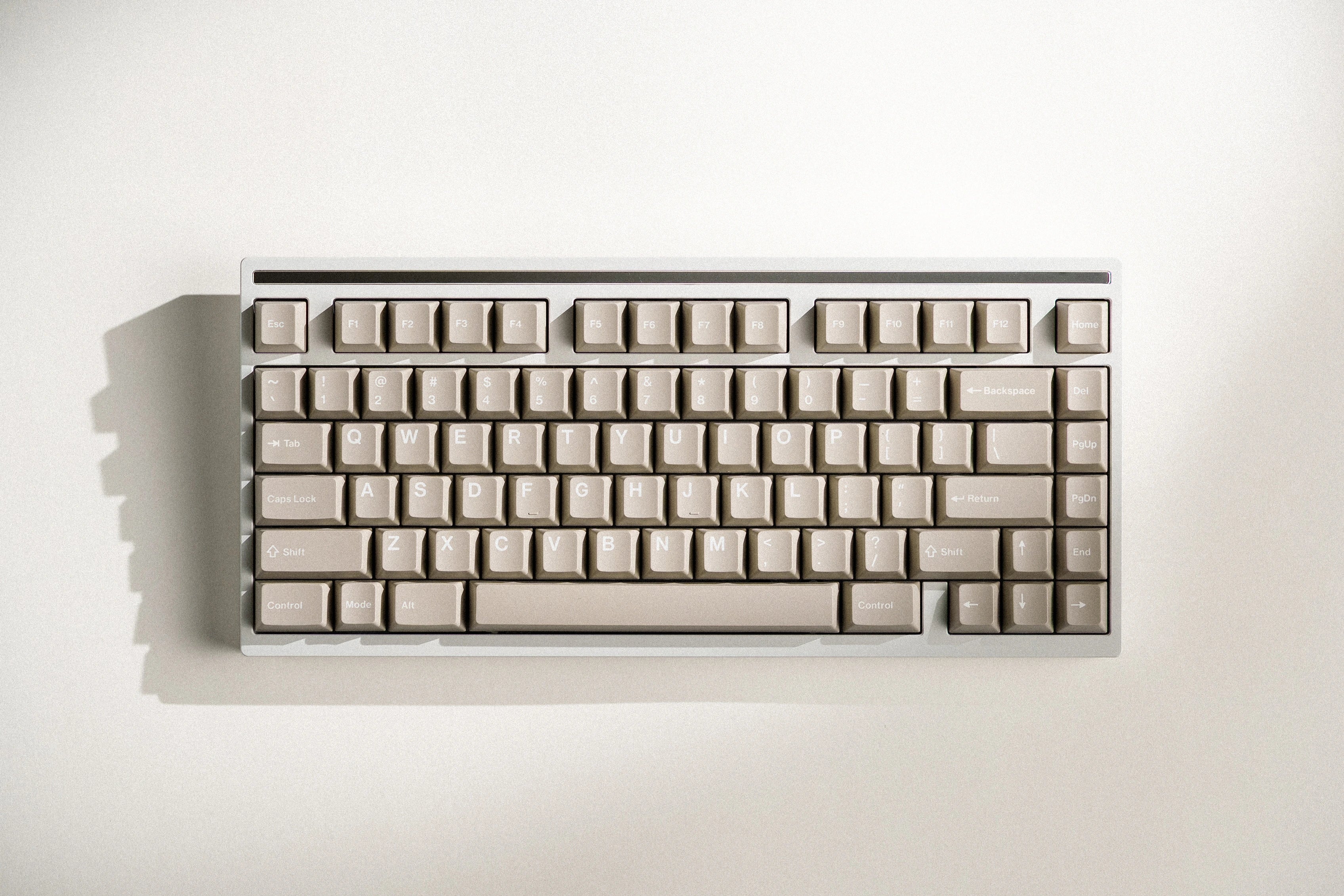 The Mode Sonnet is a compact yet refined 75% keyboard, offering a balanced footprint that maximizes desk space without sacrificing functionality. The low-profile case design and thoughtful proportions contribute to its sleek aesthetic while maintaining a comfortable typing experience.